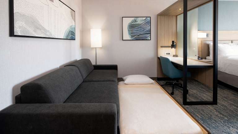Die Zimmer im SpringHill Suites by Marriott Valencia sind komfortabel eingerichtet und bieten alles, was man für einen angenehmen Aufenthalt benötigt. Einige Zimmer verfügen über eine Küchenzeile mit einer Mikrowelle, ideal für Gäste, die gerne selbst kochen möchten. Das kostenfreie WLAN ermöglicht es den Gästen, mit ihren Lieben in Kontakt zu bleiben oder im Internet zu surfen.