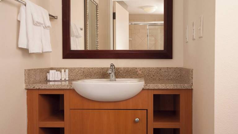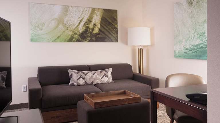 Die geräumigen Suiten im SpringHill Suites Orlando Airport bieten einen separaten Arbeits- und Entspannungsbereich sowie einen gut beleuchteten Schreibtisch und eine Küchenzeile mit einem kleinen Kühlschrank, einer Spüle und einer Mikrowelle. Das Fitnesscenter ist gut ausgestattet mit Cardiogeräten und Laufbändern und bietet eine angenehme Atmosphäre zum Trainieren.