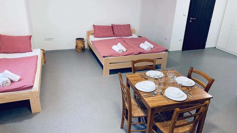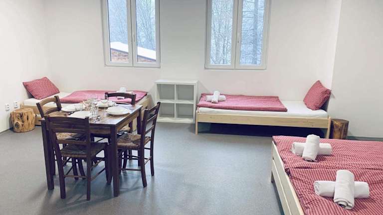 Das Sruby v areálu Kempy na Seči bietet komfortable Unterkünfte mit kostenfreien Privatparkplätzen. Die Zimmer sind gemütlich eingerichtet und bieten alles, was man für einen angenehmen Aufenthalt benötigt. Nach einem Tag voller Aktivitäten können sich die Gäste im Garten oder in der Gemeinschaftslounge entspannen und die schöne Umgebung genießen.