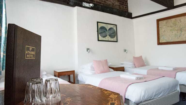 Die Zimmer im St Athans Hotel sind einfach, aber sauber und bieten Zugang zu einem Gemeinschaftsbad mit Duschen und WCs. Einige Zimmer sind mit Babybetten ausgestattet. Das Hotel ist in mehreren denkmalgeschützten georgianischen Stadthäusern untergebracht, die über attraktive Originalelemente verfügen. Eine gemütliche Lounge lädt zum Entspannen ein. Kostenfreies WLAN ist im gesamten Hotel verfügbar.