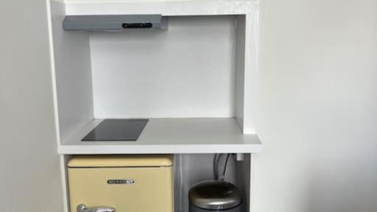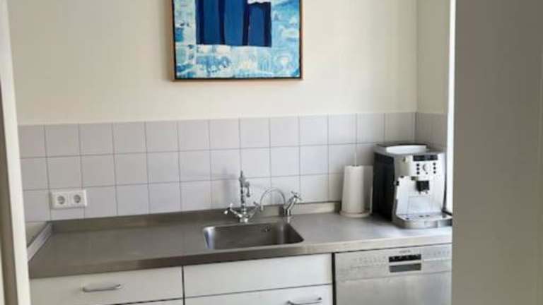 Eine voll ausgestattete Küchenzeile ist vorhanden, die einen Kühlschrank und eine Kaffeemaschine beinhaltet. Für zusätzliche Verpflegungsmöglichkeiten steht eine Snackbar zur Verfügung.