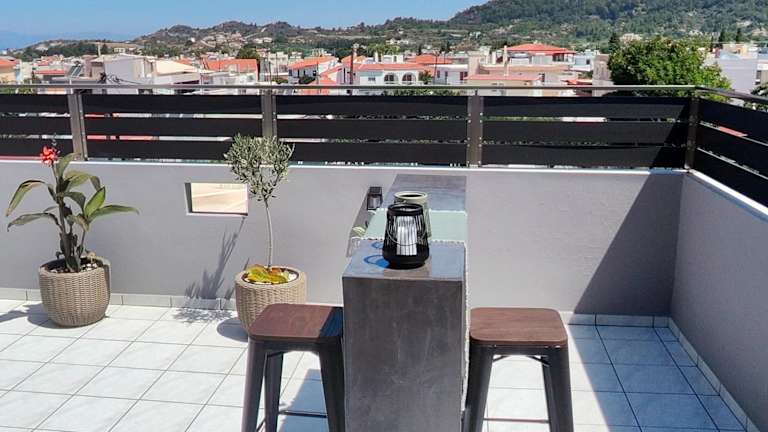 Stamatina's Luxury Penthouse in Pastida Rhodes bietet Übernachtungsmöglichkeiten in einer klimatisierten Ferienwohnung, die ansprechend gestaltet ist und über einen Balkon mit Bergblick verfügt. Die Unterkunft ist mit einem kostenlosen WLAN-Zugang ausgestattet und umfasst einen Garten sowie eine Terrasse mit Meerblick.