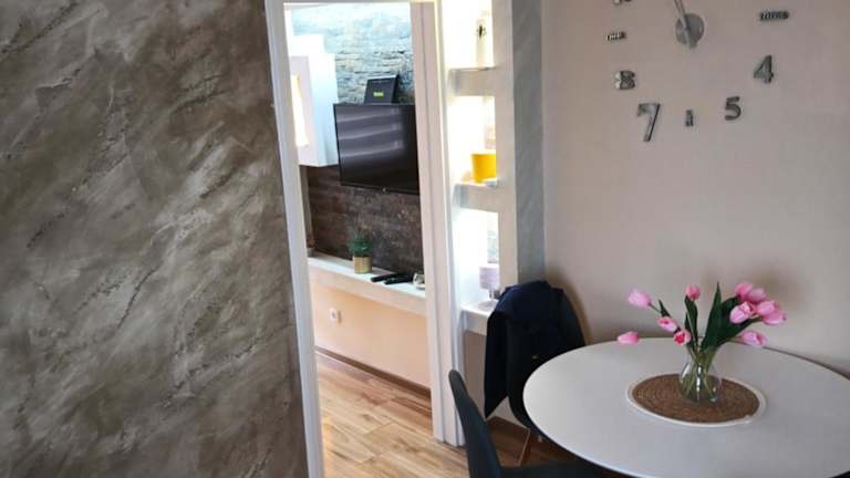 Das Apartment im stan na dan IM bietet klimatisierte Unterkünfte mit einem Balkon, der einen schönen Blick auf die Umgebung bietet. Das Apartment verfügt über ein Schlafzimmer, ein Wohnzimmer, einen TV und eine voll ausgestattete Küche mit Kühlschrank und Backofen. Handtücher und Bettwäsche werden gestellt, um den Gästen einen angenehmen Aufenthalt zu ermöglichen.
