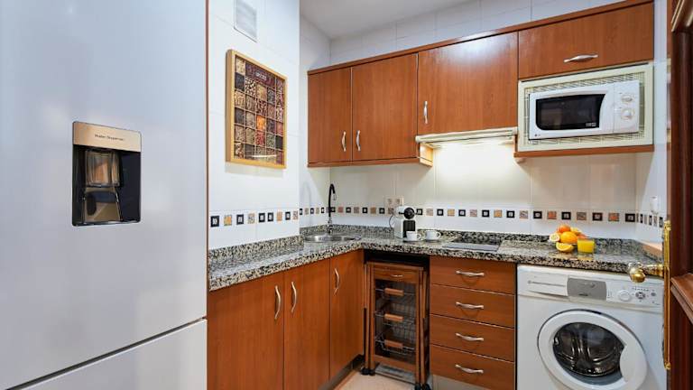 Die Ferienwohnung ist klimatisiert und umfasst 1 Schlafzimmer, ein Wohnzimmer sowie eine voll ausgestattete Küche mit Kühlschrank und Kaffeemaschine. Das Badezimmer ist mit einem Bidet und einer Dusche ausgestattet. Handtücher und Bettwäsche werden bereitgestellt.