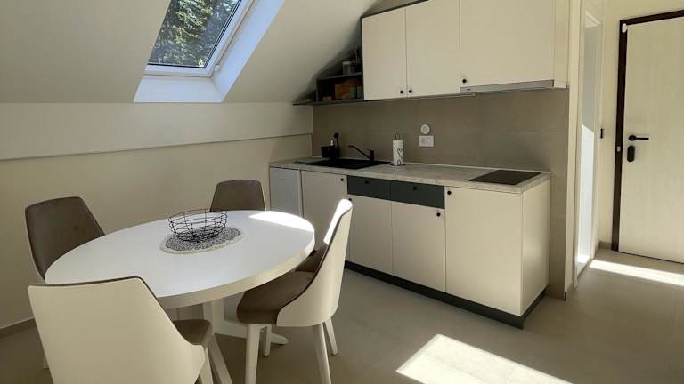 Die Wohneinheiten verfügen über eine voll ausgestattete Küche mit einem Esstisch, jedoch keine weiteren Informationen zu Verpflegungsmöglichkeiten.