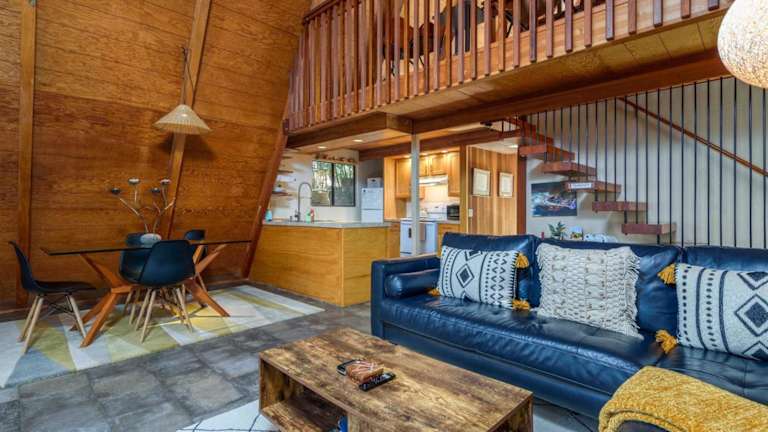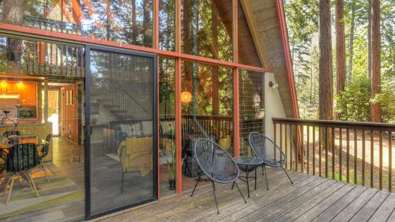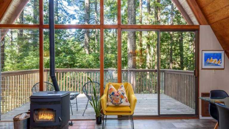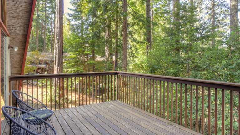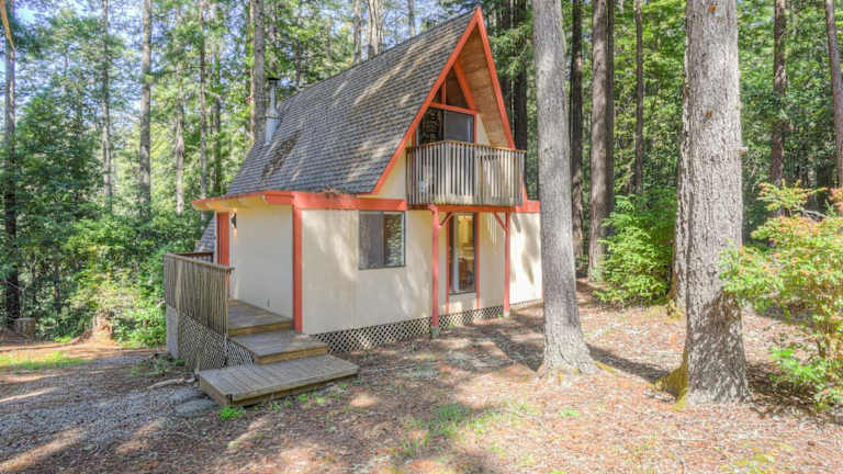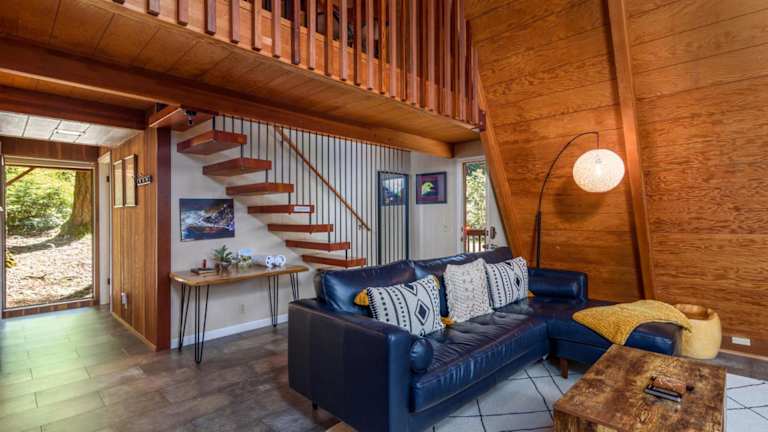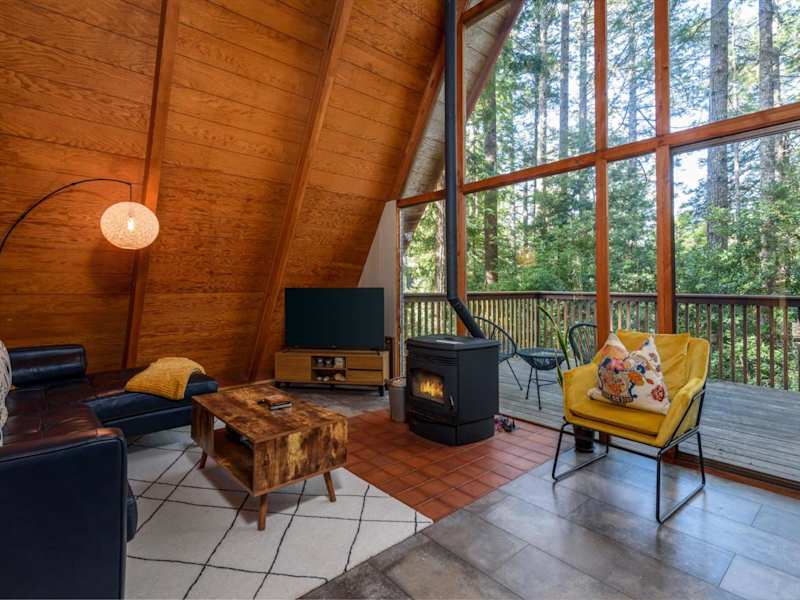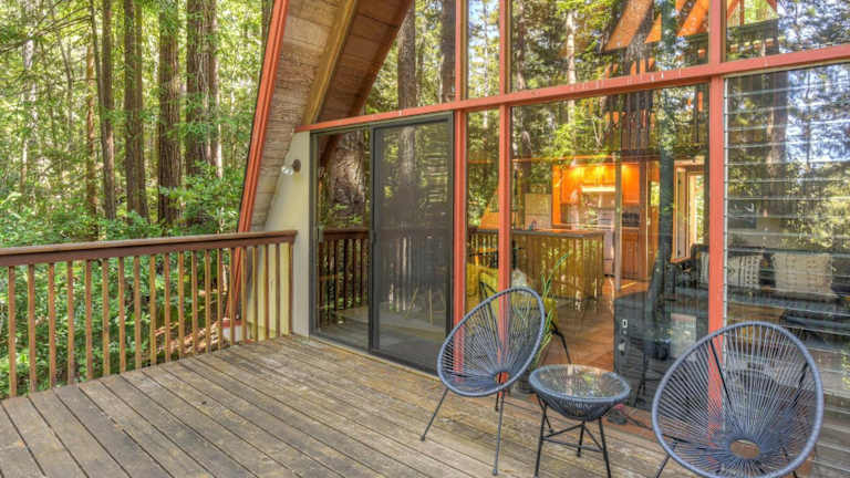 Die Unterkunft befindet sich in Gualala, Kalifornien, und bietet eine ruhige Lage im Wald mit Ausblick auf die Berge.