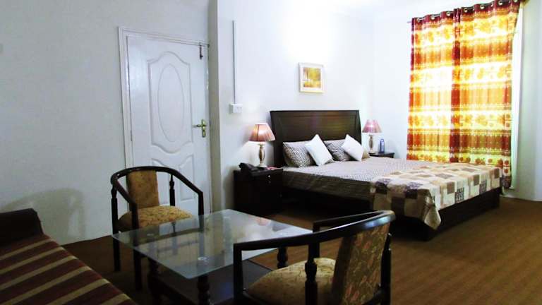 Das Stargaze Hotel & Apartment in Abbottābād bietet seinen Gästen einen angenehmen Aufenthalt mit kostenfreiem WLAN und einem Restaurant. Genießen Sie die Sonne auf der Terrasse oder nutzen Sie den Grillbereich. Die Zimmer sind komfortabel eingerichtet und einige bieten einen eigenen Balkon oder eine Terrasse. Entspannen Sie im Whirlpool und genießen Sie die kostenfreien Pflegeprodukte. Das Hotel bietet auch einen Friseursalon und die Möglichkeit, ein Auto zu mieten. Golfspielen ist eine beliebte Aktivität in der Umgebung. Der Flughafen Chaklala ist nur 62 km entfernt.