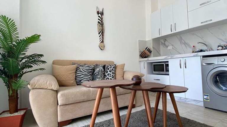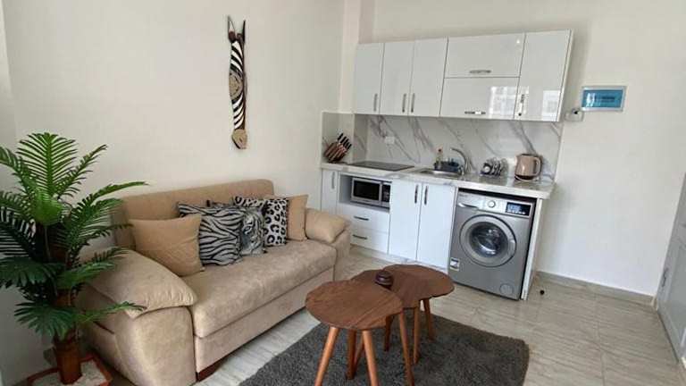Die klimatisierte Ferienwohnung besteht aus einem Schlafzimmer, einem Wohnzimmer und einer voll ausgestatteten Küche mit Kühlschrank und Kaffeemaschine. Zur weiteren Ausstattung gehören zwei Badezimmer mit Dusche und kostenlosen Pflegeprodukten. Handtücher und Bettwäsche werden bereitgestellt.