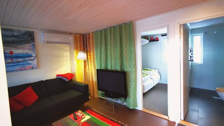 Das Ferienhaus besteht aus einem Schlafzimmer, einem Wohnzimmer und einer voll ausgestatteten Küche mit Kühlschrank und Kaffeemaschine. Das Badezimmer ist mit einer Dusche und einem Haartrockner ausgestattet. Zur Unterhaltung steht ein Flachbild-TV zur Verfügung. Die Unterkunft ist klimatisiert.