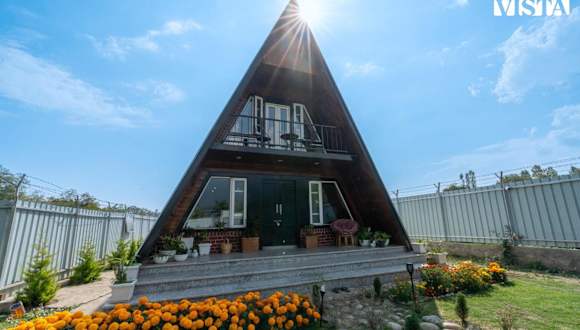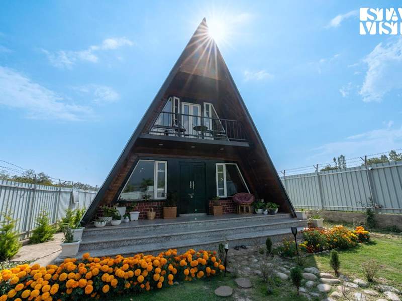 StayVista at 2BR A Frame Mountain House in Srinagar with Lawn, Bonfire, BBQ bietet Übernachtungsmöglichkeiten in einer Villa mit einem Balkon und kostenlosem WLAN. Die klimatisierte Villa umfasst 2 Schlafzimmer, ein Wohnzimmer sowie eine voll ausgestattete Küche und ein Badezimmer mit Dusche und kostenlosen Pflegeprodukten. Ein Flachbild-TV ist ebenfalls vorhanden.