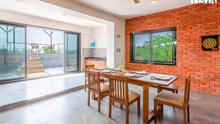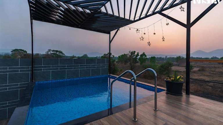 Das StayVista at One Villa in Karjat ist ein wunderschönes Ferienhaus, das mit einem Außenpool, einem Garten und einer Gemeinschaftslounge aufwartet. Genießen Sie den Luxus eines eigenen Pools und profitieren Sie von kostenfreiem WLAN und Parkplätzen. Die Villa bietet Platz für bis zu 6 Personen und verfügt über 3 Schlafzimmer, ein geräumiges Wohnzimmer und eine voll ausgestattete Küche. Von der Terrasse aus können Sie den Blick auf die umliegenden Berge genießen. Die Villa liegt in der Nähe von Utsav Chowk und dem Bahnhof Kharghar. Der internationale Flughafen Mumbai ist ebenfalls gut erreichbar.