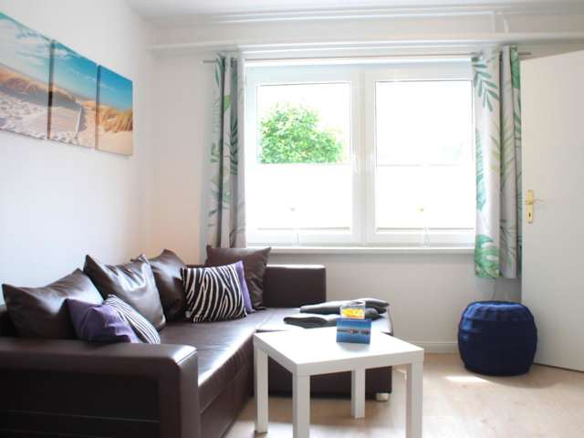Die Ferienwohnung verfügt über ein Schlafzimmer und bietet eine gut ausgestattete Küche mit einem Kühlschrank und einem Ofen. Zur Ausstattung gehören Satelliten-TV, kostenloses WLAN und Gartenmöbel. Zudem sind Nichtraucherzimmer vorhanden, und die Unterkunft ist eine Nichtraucherunterkunft, die in allen öffentlichen und privaten Bereichen rauchfrei ist.