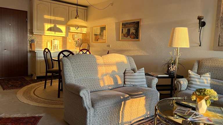 Die Ferienwohnung umfasst ein Schlafzimmer und ein Wohnzimmer. Sie ist ausgestattet mit einer voll ausgestatteten Küche, die einen Kühlschrank und eine Kaffeemaschine beinhaltet, sowie einem Badezimmer mit Dusche und Haartrockner. Handtücher und Bettwäsche können gegen Aufpreis bereitgestellt werden.