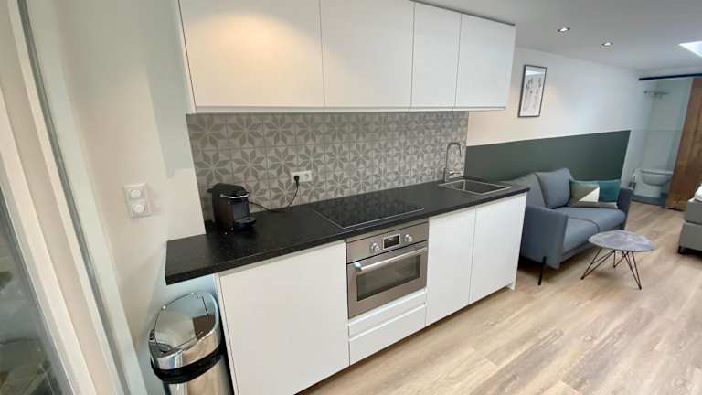 Die Ferienwohnung verfügt über 1 Schlafzimmer, 1 Badezimmer, eine voll ausgestattete Küche, einen Essbereich, einen Flachbild-TV mit Kabelkanälen sowie Bettwäsche und Handtücher. Eine Terrasse mit Gartenblick ist ebenfalls vorhanden.