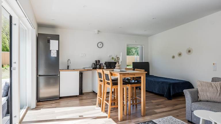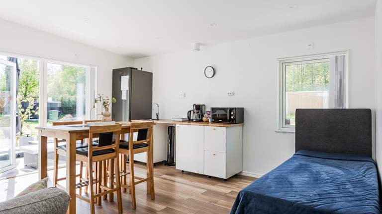 Das Ferienhaus umfasst 1 Schlafzimmer, ein Wohnzimmer und ein Bad mit Dusche sowie kostenlosen Pflegeprodukten. Handtücher und Bettwäsche sind in der Unterkunft vorhanden.