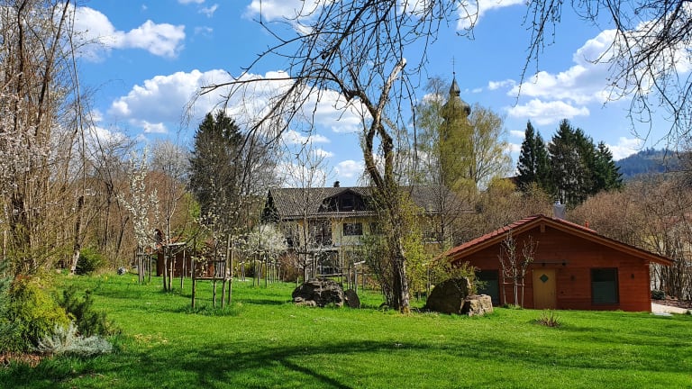 Zentrumsnah, aber ruhig gelegenes gemütliches Haus inmitten einer 4200 qm großen Gartenanlage mit Teich mit Badestelle, Gartenhütte "BreuStüberl" und Grillkamin. Exklusiv: private Sternwarte im Garten. Ausstattung: 12-Zoll-Dobson mit Sonnenfilter und Binocular zur Sonnenbeobachtung und 20-Zoll-Goto-Dobson für die Beobachtung von Planeten, Mond und Deep Sky Objekten. Zusätzlich: Privatbücherei, Skikeller, Trockenraum mit Waschmaschine und Trockner, TT. Neuerbaute Ferienwohnungen (5-Sterne-DTV) mit besonderem Flair und viel Platz, luxuriös ausgestattet. Dazu ein Luxus-Chalet (5-Sterne-DTV) für höchste Ansprüche mit Sauna- / Infrarotkabine mit Lichttherapie, einem mit 30 Therapiedüsen ausgestatteten Ganzjahres-Außenwhirlpool mit „Nordlicht-Paket“ und Entspannungspaket, einem offenen Kamin und erlesenem Wohnkomfort. Auf Wunsch in den Wohnungen und im Chalet mit Frühstück. Mit der Bahn Anreisende holen wir selbstverständlich gegen eine Unkostenpauschale in Gotteszell, Gumpenried oder Bad Kötzting ab. Wir freuen uns auf Sie! Ihre Familie Breu