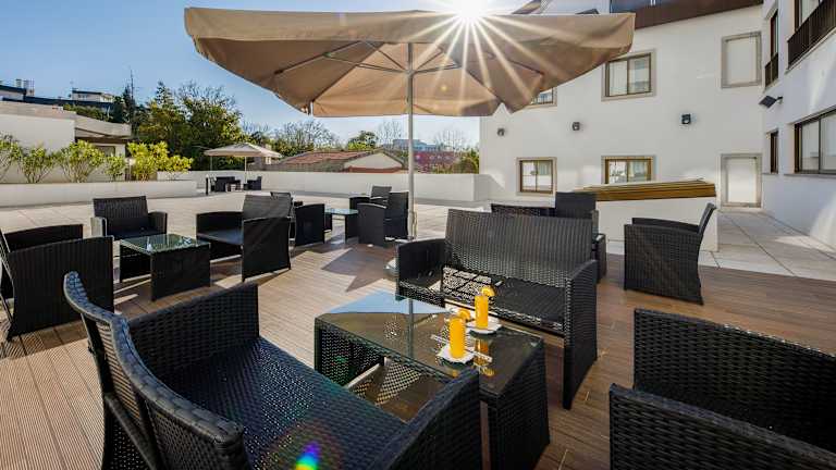 Das Hotelrestaurant bietet portugiesische Spezialitäten an, die Sie im Innenbereich oder im Garten genießen können. Eine Bar ist ebenfalls vorhanden, in der Sie verschiedene Getränke bestellen können.