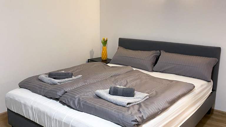 Die Ferienwohnung ist ausgestattet mit einem Schlafzimmer, einer Küche, die mit einem Kühlschrank und einem Ofen versehen ist, einem Flachbild-TV sowie einem Sitzbereich. Des Weiteren gibt es ein Badezimmer, das mit einer Dusche ausgestattet ist. Handtücher und Bettwäsche werden bereitgestellt.