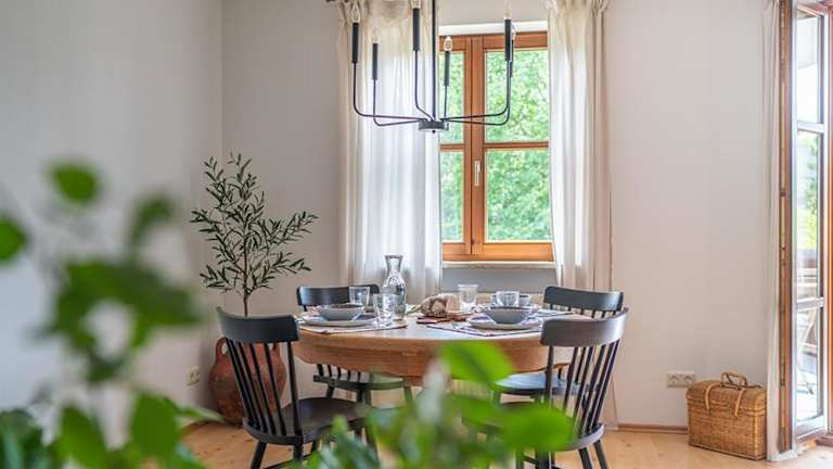 Die stilvolle Seewohnung in Utting befindet sich in der malerischen Umgebung des Ammersees, 38 km von Bahnhof München-Pasing und 44 km vom Hauptbahnhof München entfernt. Die Nähe zum Flughafen Memmingen, der sich 75 km entfernt befindet, ergänzt die gute Erreichbarkeit dieser Lage.