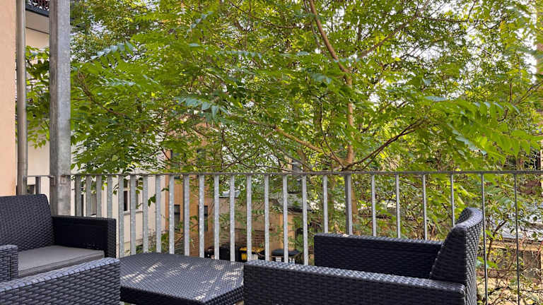 Die Unterkunft Stilvoller Altbau mit Balkon - 10 min to center bezeichnet sich als stilvoller Altbau und verfügt über einen Balkon sowie eine Terrasse. Es wird kostenloses WLAN angeboten und es gibt eine Bar.