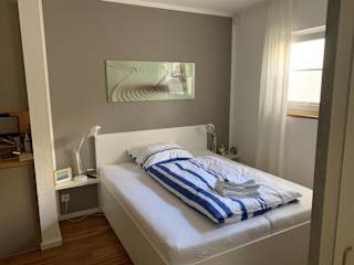 Die Ferienwohnung besteht aus einem Schlafzimmer, einem Wohnzimmer und einer voll ausgestatteten Küche, die mit einem Kühlschrank und einer Kaffeemaschine ausgestattet ist. Zudem gibt es ein Badezimmer mit Dusche und Haartrockner. Handtücher und Bettwäsche werden bereitgestellt.