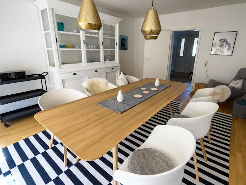 Die Ferienwohnung umfasst 3 Schlafzimmer und eine gut ausgestattete Küche mit Kühlschrank und Geschirrspüler. Das Badezimmer ist mit einer Dusche, einem Haartrockner und einer Waschmaschine ausgestattet. Handtücher und Bettwäsche sind ebenfalls vorhanden.