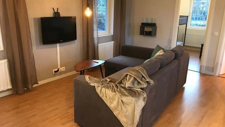 Das Ferienhaus verfügt über 2 Schlafzimmer, ein Wohnzimmer mit Flachbild-TV, eine gut ausgestattete Küche mit Kühlschrank und Geschirrspüler sowie 1 Badezimmer mit Dusche. Handtücher und Bettwäsche werden bereitgestellt. Die Unterkunft bietet zusätzlich eine Terrasse mit Gartenblick.