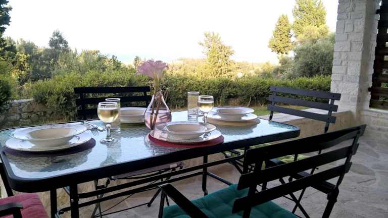 Das Stone Studio in Nature with view to Corfu town! bietet eine voll ausgestattete Küche, in der die Gäste ihre eigenen Mahlzeiten zubereiten können. Alternativ können sie auch die Restaurants und Cafés in der Umgebung erkunden und lokale Spezialitäten probieren. Die Auswahl an gastronomischen Einrichtungen in der Nähe des Apartments bietet für jeden Geschmack etwas Passendes.