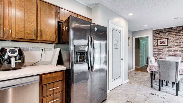 Die Küche des Ferienhauses ist mit einem Kühlschrank und einem Geschirrspüler ausgestattet. Handtücher und Bettwäsche werden bereitgestellt.