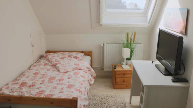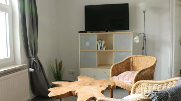 Die Ferienwohnung umfasst zwei Schlafzimmer, ein Wohnzimmer mit einem Flachbild-TV, eine gut ausgestattete Küche mit Kühlschrank und Geschirrspüler sowie ein Badezimmer mit Dusche. Handtücher und Bettwäsche werden bereitgestellt.