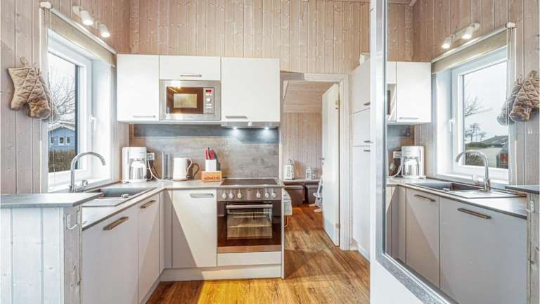 Das Ferienhaus verfügt über drei Schlafzimmer und ist mit einer Küche ausgestattet, die über einen Kühlschrank und einen Geschirrspüler verfügt. Es gibt ein Badezimmer mit einer Dusche und einem Whirlpool. Zur Unterhaltung stehen ein TV, ein DVD-Player und ein CD-Player zur Verfügung.