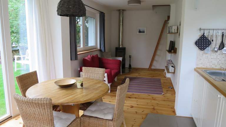 Das Ferienhaus umfasst ein Schlafzimmer, ein Wohnzimmer und eine voll ausgestattete Küche, die mit einem Kühlschrank und einer Kaffeemaschine ausgestattet ist. Zudem beinhaltet es ein Badezimmer mit Dusche und kostenlosen Pflegeprodukten. Handtücher und Bettwäsche werden ebenfalls bereitgestellt.