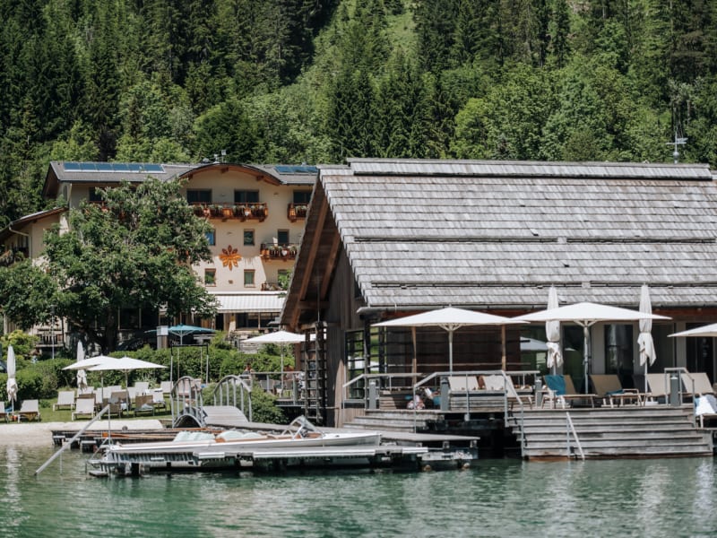Die 30 Hotelzimmer im Strandhotel am Weissensee sind liebevoll und hochwertig eingerichtet. Alle Zimmer verfügen über Balkone, die einen schönen Blick auf den See oder auf den Garten bieten. Für Ihren Spa-Besuch finden Sie auf Ihrem Zimmer einen Strandkorb mit Bademänteln, Badeschuhen und Handtüchern. Für Ihre Erfrischung am Zimmer haben wir eine Karaffe Granderwasser und frische Gläser für Sie bereit gestellt. Unsere 17 Appartements in Gehweite von unserem Hotel bieten eine Vielfalt von verschiedenen Wohnmöglichkeiten mit und ohne Küche und lassen sich auch gut für Großfamilien kombinieren. In unseren Appartements können es sich alle gemeinsam richtig gemütlich machen und sich wie daheim fühlen - nur noch besser, weil der Komfort und Luxus jederzeit auf Abruf steht. Wer einmal keine Lust zu kochen hat, lässt sich ganz einfach mal in unserem Hotelrestaurant verwöhnen! Und selbstverständlich sind alle unsere Gäste herzlich eingeladen auch in unserem See-Spa Angebot zu schmöckern und eine wohltuende Körperbehandlung auszusuchen. Ein eigener Seezugang, Sauna mit See-Blick und eigener Garten- und Spielbereich warten auf Ihren Besuch! Für einen einzigartigen Urlaub mit Familie oder guten Freunden ist unser Seehaus in Gatschach der richtige Ort. Großzügige Räumlichkeiten. Direkter Seeblick. Eigener Steg und Bootshaus. Liebevollste Einrichtung. Ausgestattet mit einem großzügigen Wohnzimmer mit Stube und Wohnküche, ein großes Schlafzimmer im Obergeschoss mit eigenem Wohnbereich, großem Balkon und großzügigem Badezimmer, ein Doppelschlafzimmer mit eigener Toilette und gemütlicher Stube, ein Doppelschlafzimmer mit eigenem Badezimmer. Rund um das Haus können Sie die herrliche Umgebung auf ihrer Terrasse geniessen, den Grill anwerfen und die Seele baumeln lassen.