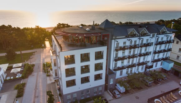 Unser 4-Sterne-Superior Strandhotel Heringsdorf liegt direkt an der Strandpromenade, ca. 30 Meter vom feinen Ostseestrand. Es erwartet Sie ein stilsicher eingerichtes Haus, mit dem klasssischen Seebäder-Flair. Im großzügigem Wellnessbereich des Hotels können Sie Schwimmbad, beheizten Sole-Außenpool (30 Grad ganzjährig) , verschiedene Saunen und viele Wellness-Anwendungen genießen. Unsere Attraktion: die Panorama-Sauna und den Ruheraum mit Ostseeblick begeistern jeden mit dem Blick auf das Meer. Das Strandhotel Heringsdorf bietet auch viele attraktive Urlaubs-Arrangements.