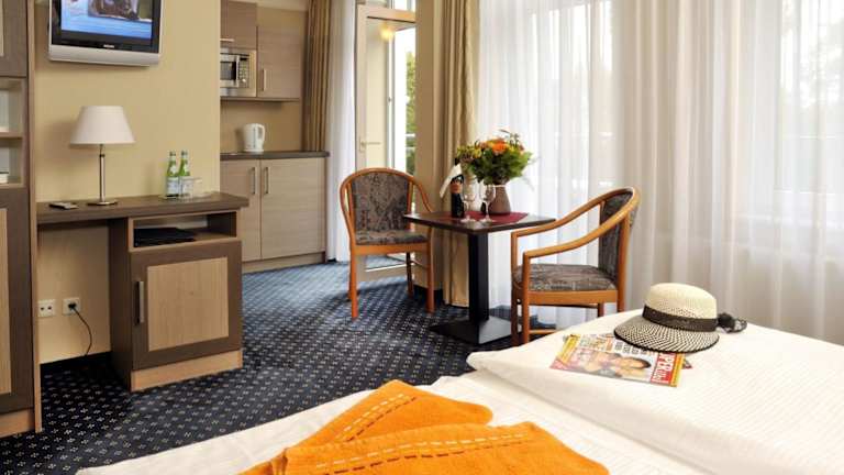 Buchen Sie das Strandhotel Nordischer Hof für einen entspannten Aufenthalt in Kühlungsborn. Das Hotel bietet eine ideale Lage nur wenige Schritte vom Strand entfernt und verfügt über komfortable Zimmer, kostenfreies WLAN und kostenfreie Parkplätze. Beginnen Sie Ihren Tag mit einem leckeren Frühstück und genießen Sie die Fischgerichte und italienischen Spezialitäten im Restaurant Portofino. Für Kinder gibt es einen Spielplatz und Radfahrer können Fahrräder direkt im Hotel ausleihen.