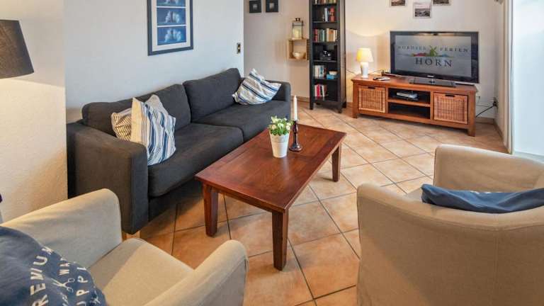 Das Apartment im Hotel Strandkorb befindet sich im Erdgeschoss und verfügt über 2 Schlafzimmer, die für eine komfortable Nachtruhe sorgen. Das Apartment ist mit einem TV ausgestattet, damit Sie Ihre Lieblingssendungen verfolgen können, und verfügt über eine voll ausgestattete Küche mit einem Kühlschrank und einem Backofen, in der Sie Ihre eigenen Mahlzeiten zubereiten können. Die gemütliche Einrichtung und der Blick auf den Garten sorgen für eine entspannte Atmosphäre, in der Sie sich wie zu Hause fühlen können.