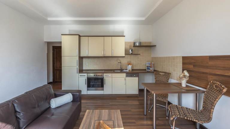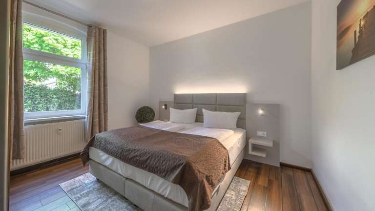 Die Ferienwohnung verfügt über ein Schlafzimmer, einen Fernseher, eine gut ausgestattete Küche mit Kühlschrank und Geschirrspüler sowie ein Badezimmer mit Dusche. Handtücher und Bettwäsche werden bereitgestellt. Es sind Gartenmöbel vorhanden und die Unterkunft bietet Nichtraucherzimmer.