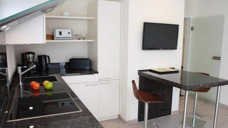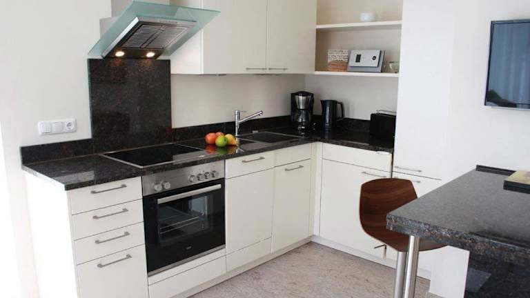 Die Ferienwohnung verfügt über ein Schlafzimmer und eine voll ausgestattete Küche mit Kühlschrank und Geschirrspüler. Das Badezimmer ist mit einer Dusche, einem Haartrockner und einer Waschmaschine ausgestattet. Zur Unterhaltung steht ein Fernseher zur Verfügung.