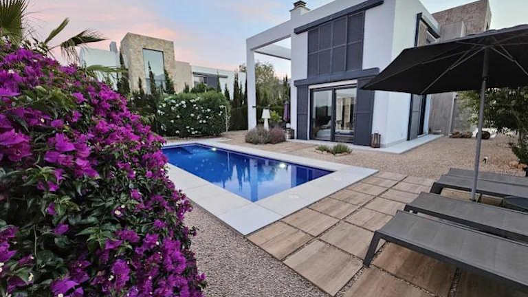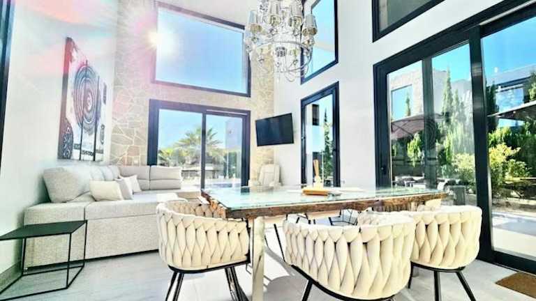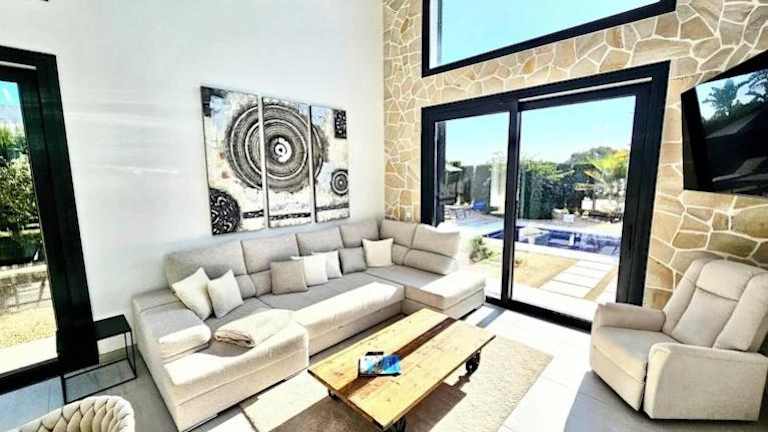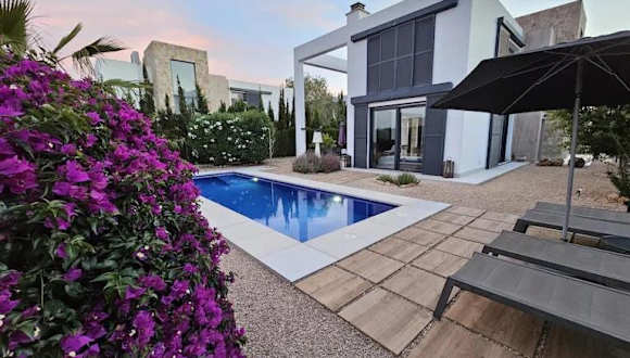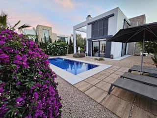 Die Strandnahe Design Villa bietet einen schönen Blick auf den Pool. Die klimatisierte Unterkunft verfügt über insgesamt 180 Quadratmeter und besticht durch moderne Gestaltungselemente. Es stehen Übernachtungsmöglichkeiten in zwei Schlafzimmern zur Verfügung.