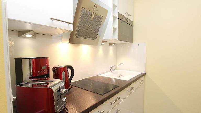 Die Ferienwohnung besteht aus einem Schlafzimmer sowie einem Wohnzimmer und verfügt über eine voll ausgestattete Küche mit Kühlschrank und Wasserkocher. Das Badezimmer ist mit einer Dusche und einem Haartrockner ausgestattet. Ein TV sorgt für Unterhaltung. Die Unterkunft bietet zudem Gartenmöbel und einen privaten Parkplatz.
