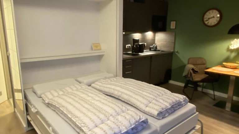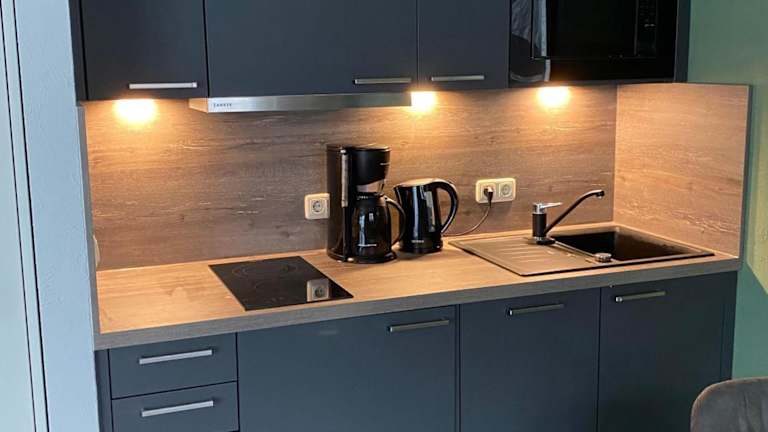 Die Ferienwohnung Strandstrasse-32-App-41 bietet einen Balkon und modernen Komfort. Sie verfügt über ein Schlafzimmer, ein Wohnzimmer mit TV sowie eine voll ausgestattete Küche.