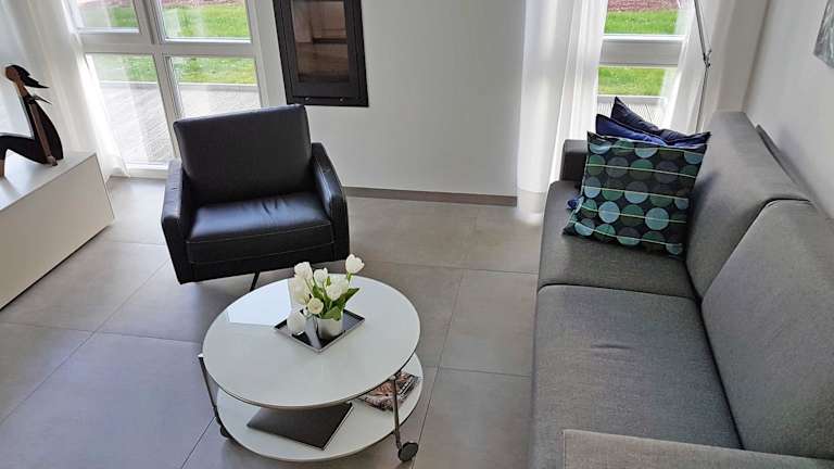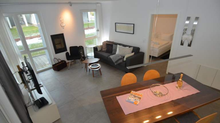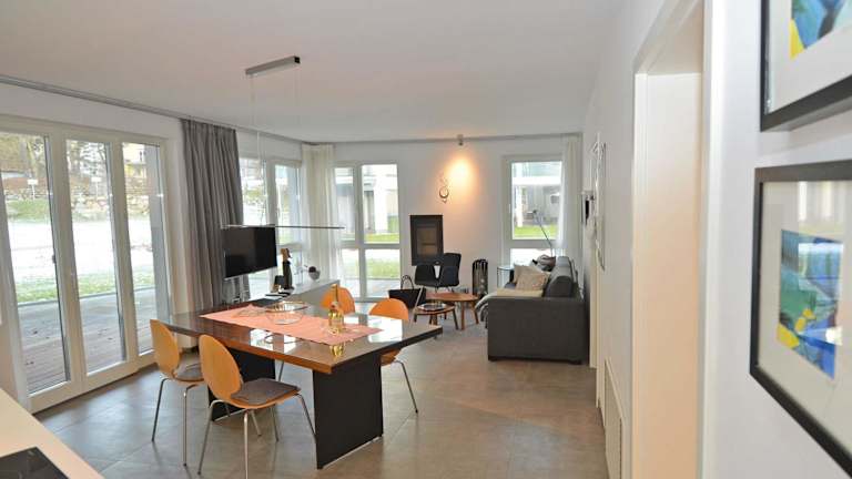 In der Strandvilla Baabe - Ferienwohnung 16 mit Sauna stehen Ihnen ein komfortabler Sitzbereich, eine voll ausgestattete Küche und ein eigenes Badezimmer zur Verfügung. Das moderne und stilvolle Design sorgt für eine angenehme Atmosphäre und der Flachbild-TV bietet Ihnen Unterhaltungsmöglichkeiten.