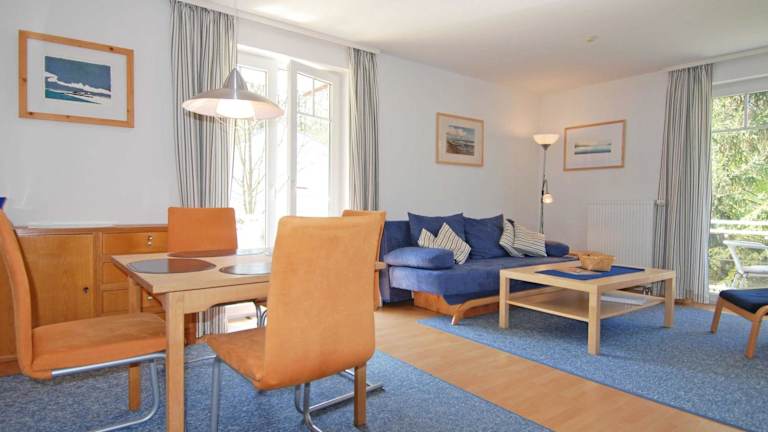 Die Strandwohnungen Sellin F 571 - Fewo 04 mit 2 Balkonen befinden sich im beliebten Ostseebad Sellin. Der Südstrand Sellin und der Strand Ostseebad Sellin sind nur 200 m bzw. 300 m entfernt. Hier können Sie die Sonne genießen und im Meer schwimmen. Die Umgebung eignet sich auch ideal zum Radfahren und bietet schöne Routen entlang der Küste. In der Nähe finden Sie auch den Strand Sellin Dog und das Freilichttheater Ralswiek. Der Flughafen Bornholm ist etwa 135 km entfernt.