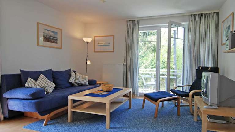 Die Strandwohnungen Sellin F 571 - Fewo 04 mit 2 Balkonen bieten ein komfortables Apartment für Ihren Aufenthalt. Es verfügt über ein Schlafzimmer, ein Wohnzimmer und eine voll ausgestattete Küche mit Kühlschrank und Kaffeemaschine. Das Badezimmer ist mit einer Dusche und einem Haartrockner ausgestattet. Im Wohnzimmer steht Ihnen Sat-TV zur Verfügung, um sich zu unterhalten. Vom Balkon aus können Sie die frische Ostseeluft genießen.