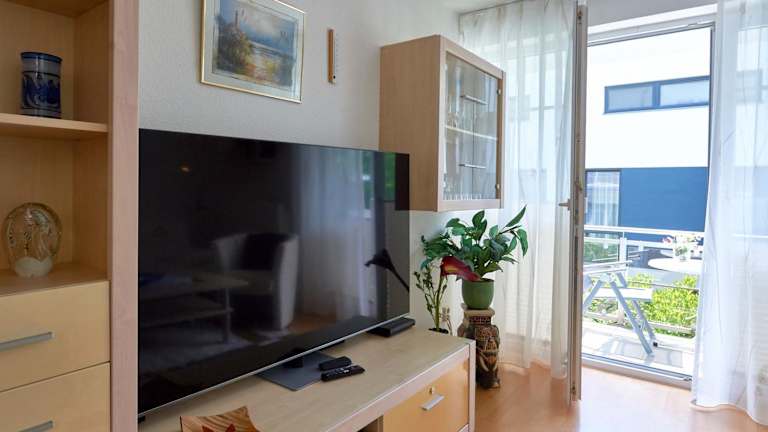 Das Apartment verfügt über ein gemütliches Schlafzimmer, ein geräumiges Wohnzimmer und eine voll ausgestattete Küche mit Kühlschrank und Kaffeemaschine. Das Badezimmer ist mit einer Dusche und einem Haartrockner ausgestattet. Zur weiteren Ausstattung gehören Sat-TV und ein DVD-Player für Unterhaltungsmöglichkeiten. Ein Balkon bietet die Möglichkeit, die frische Ostseeluft zu genießen. WLAN ist in der Unterkunft kostenlos verfügbar und private Parkplätze stehen kostenfrei zur Verfügung.