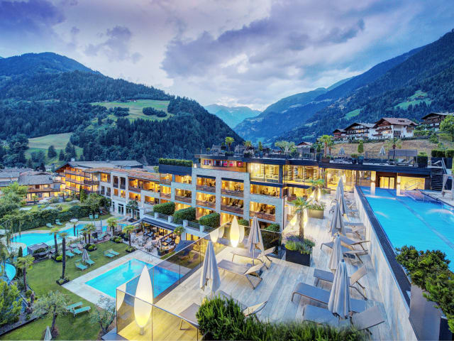 STROBLHOF Active Family Spa Resort, familienfreundlich, 100 Zimmer, Tiefgarage mit kostenlosem Stellplatz für jedes Zimmer, in modern alpinem Stil, 3/4 Verwöhnpension inklusive mit reichhaltigem Frühstücksbuffet, nachmittags zw. 14.30 und 16.30 Uhr Vitalbuffet mit Tee, Kaffee, warme Speisen und Snacks, abends 5 Gänge Menu mit Auswahl, Vegetarische Gerichte. Tolle neue Saunawelt mit Ruhebereichen und täglichen Aufgüssen. Aktives Wochenprogramm inklusive, mit geführten Wanderungen, geführten Radtouren, Fitnesskursen wie Yoga, Nordic Walking, Wassergymnastik, Pilates, Rückengymnastik, u.v.m. Siguna SPA mit Klassischen Behandlungen, Packungen, Kosmetik, Ayurveda, Lomi Lomi, Kräuterstempel und Energetische Massagen. Fitnessbereich mit revolutionärem Trainingssystem mit dem Wav-e Gerät.