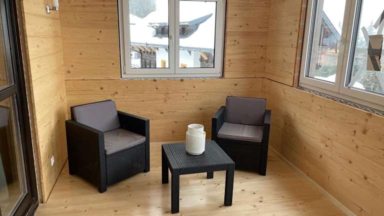 Die Wohneinheiten der Stubihuettn verfügen über eine voll ausgestattete Küche mit Kühlschrank, Geschirrspüler, Ofen, Mikrowelle, Kaffeemaschine und Wasserkocher. Ein Essbereich, ein Flachbild-TV mit Satellitenkanälen sowie ein eigenes Badezimmer mit Dusche und Haartrockner sind ebenfalls vorhanden.