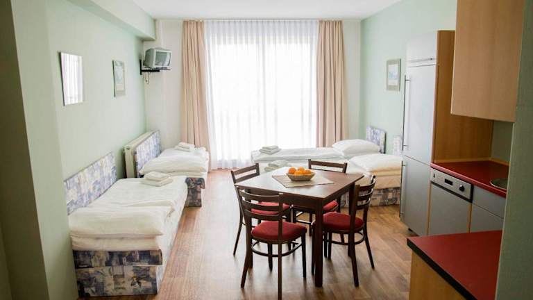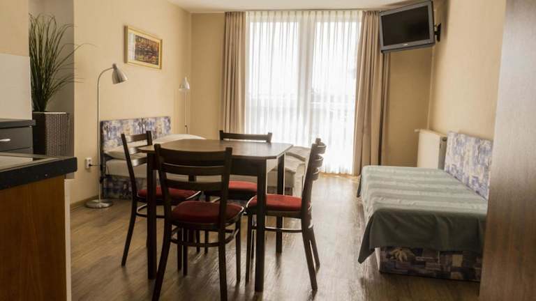 Auf Anfrage können Sie ein Frühstück und ein Abendessen arrangieren. Wenn Sie keine Lust haben, selbst zu kochen, können Sie auch die nahe gelegene Pizzeria besuchen, die nur 100 m von den Apartments entfernt ist. Hier können Sie köstliche Pizza und andere italienische Gerichte genießen.