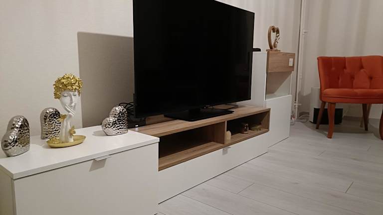 Die Ferienwohnung verfügt über 1 Schlafzimmer, eine Küche mit Kühlschrank und Ofen, einen Flachbild-TV, einen Sitzbereich sowie ein Badezimmer mit Dusche. Handtücher und Bettwäsche werden bereitgestellt.