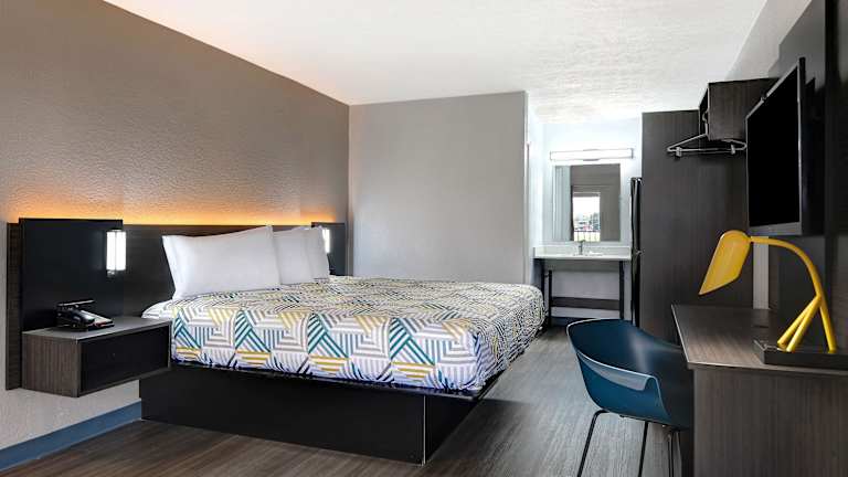 Das Studio 6 Meridian, MS Bonita Lakes in Meridian bietet komfortable und klimatisierte Zimmer mit kostenfreiem WLAN. Genießen Sie einen angenehmen Aufenthalt in diesem Hotel und entspannen Sie in der Snackbar bei einem erfrischenden Getränk. Die Zimmer sind mit Kabel-TV und einer praktischen Küchenzeile ausgestattet. Bettwäsche und Handtücher sind in jedem Zimmer vorhanden. Der Regionalflughafen Meridian ist nur 9 km entfernt und bietet eine bequeme Anbindung für Reisende.